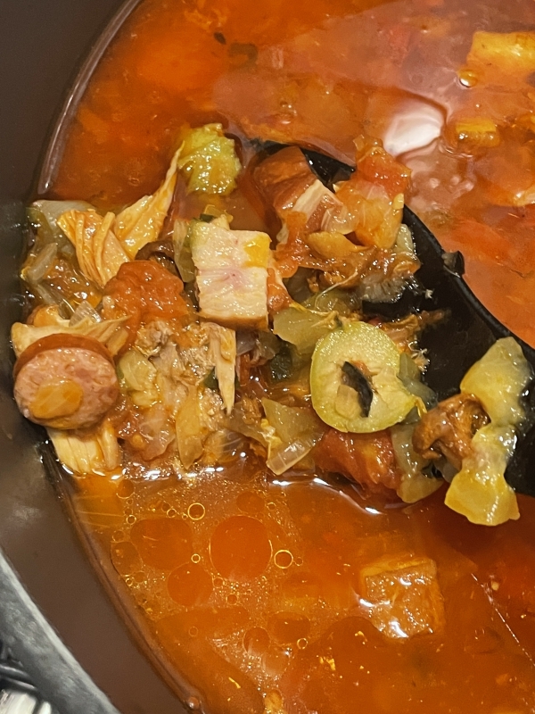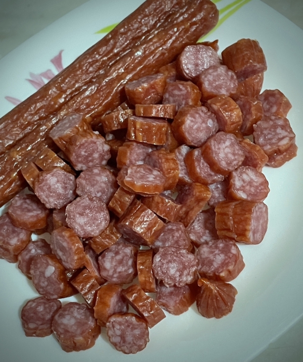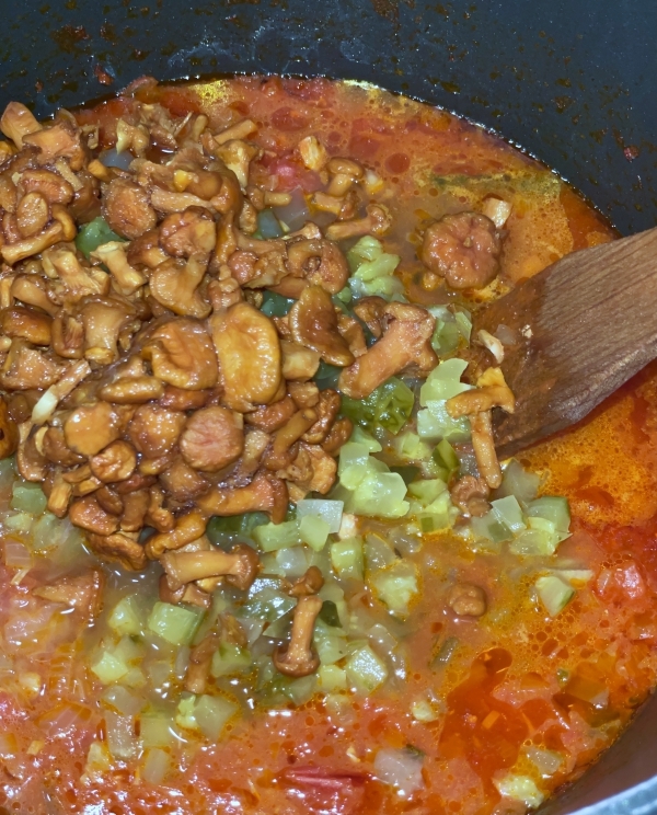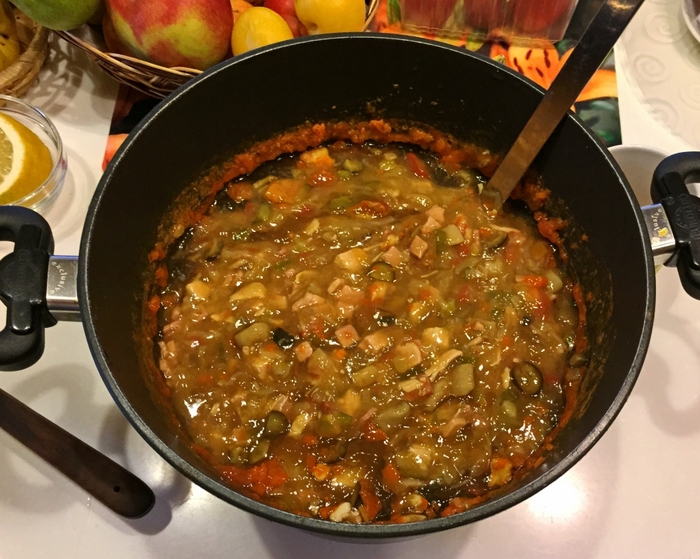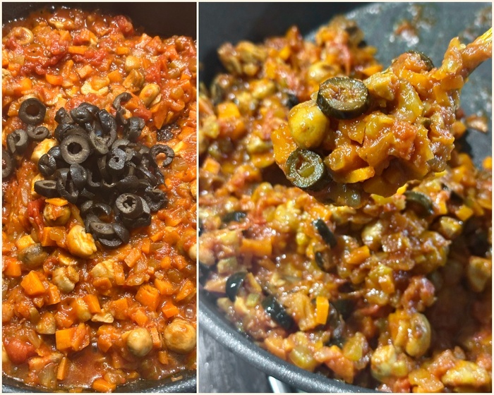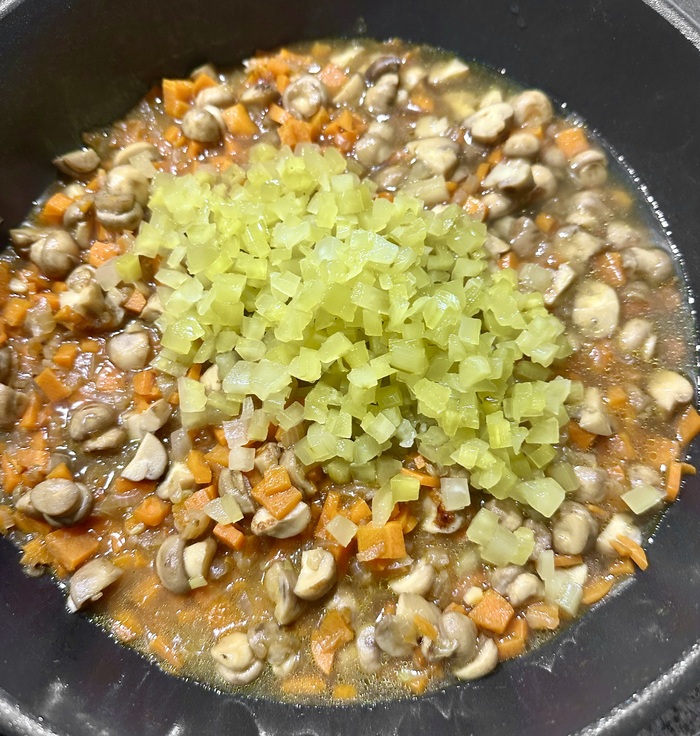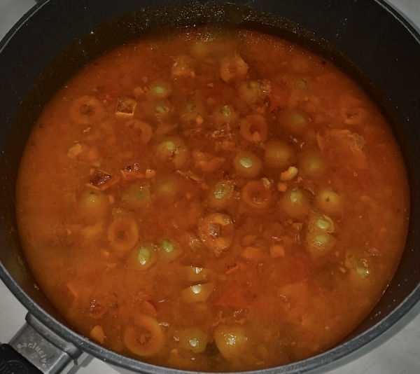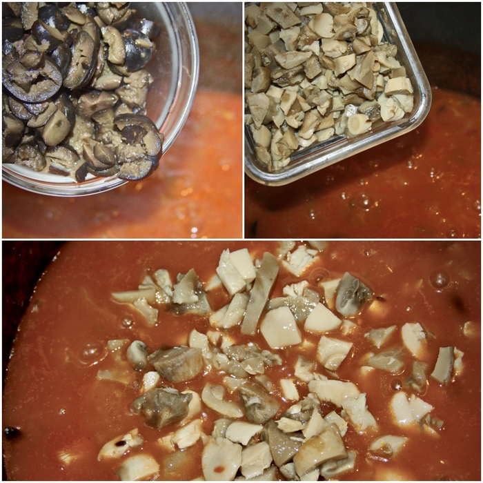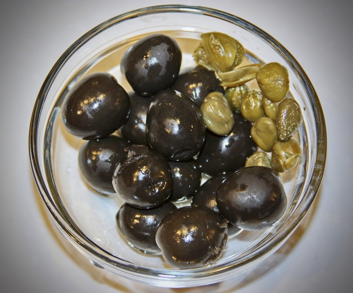 Через минут пятнадцать добавил дюжину нарезанных на колечки маслин. Маслины, замечу, тоже соленые.