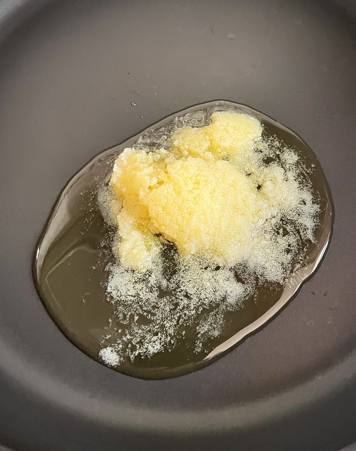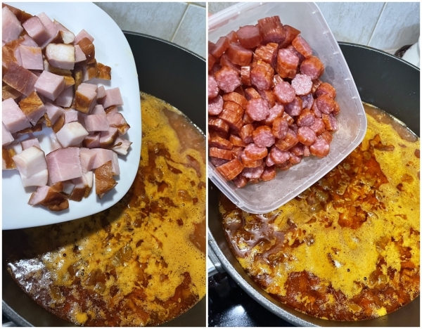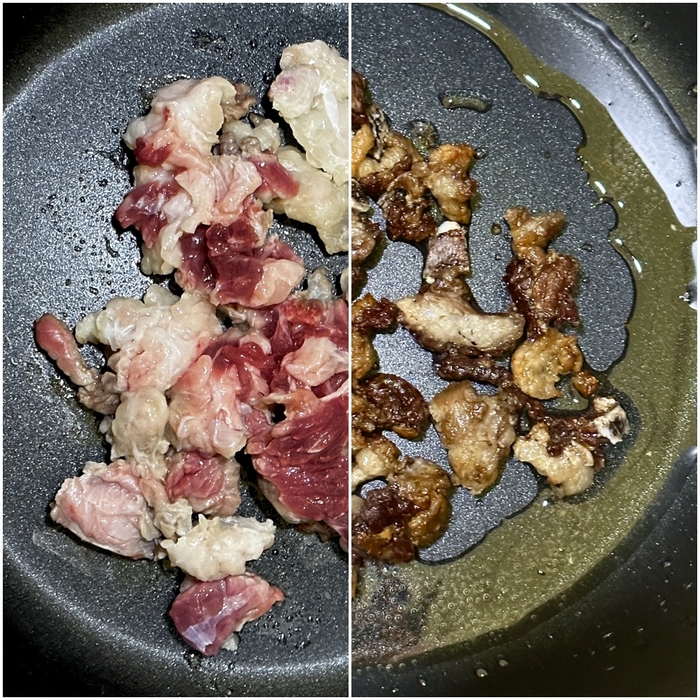 Я собрал с поверхности бульона пару половников жирности и в сковороду отправил.