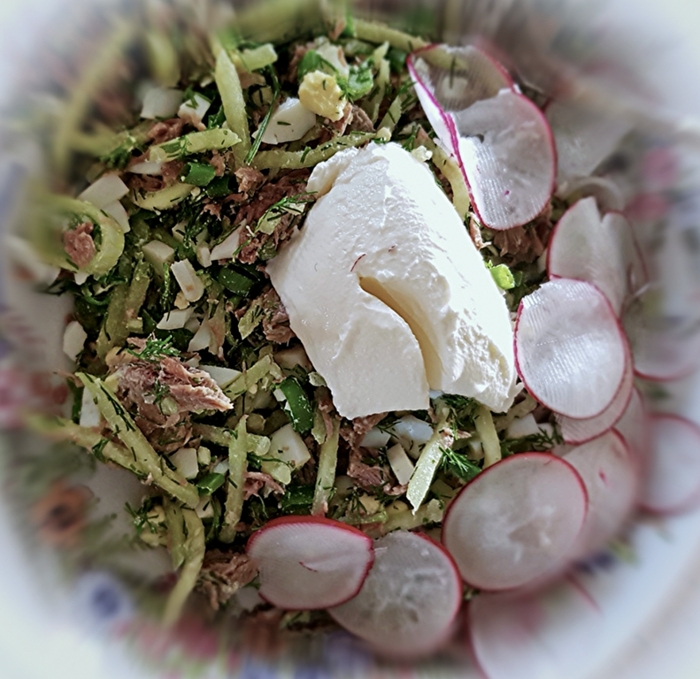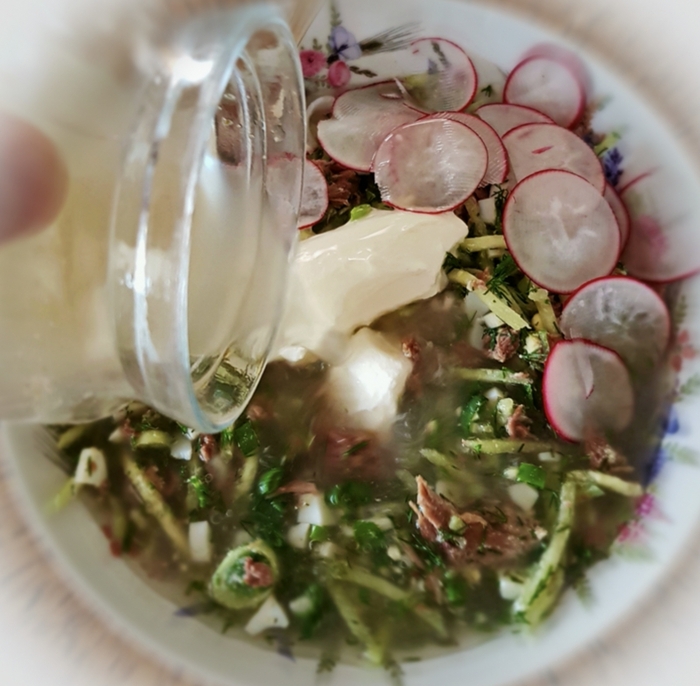 Сметана там или еще какой кефир – опционально, На любителя. В тарелку.