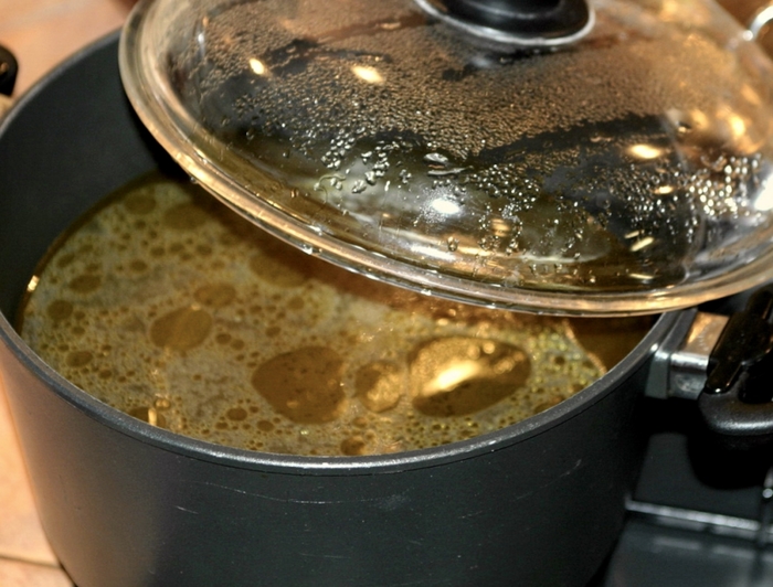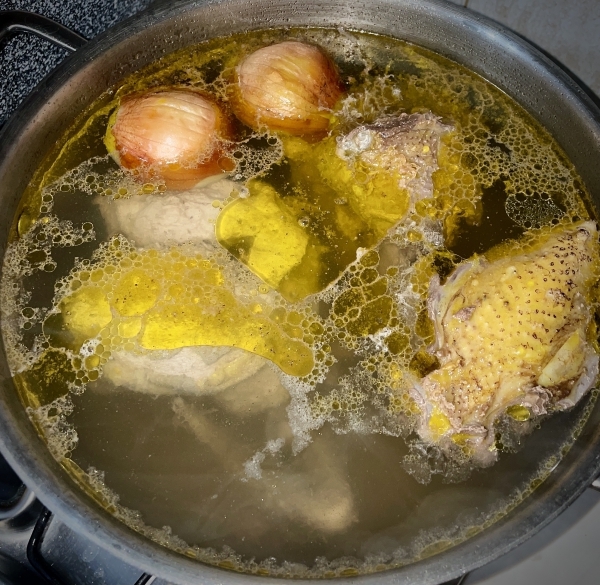 Второй. Я бульон не «варю». На сильном нагреве довожу до кипения. Появляется пена. Убавляю нагрев до «чуть выше среднего» и даю легко кипеть, снимая пену до того момента, как она, пена перестанет выделяться.