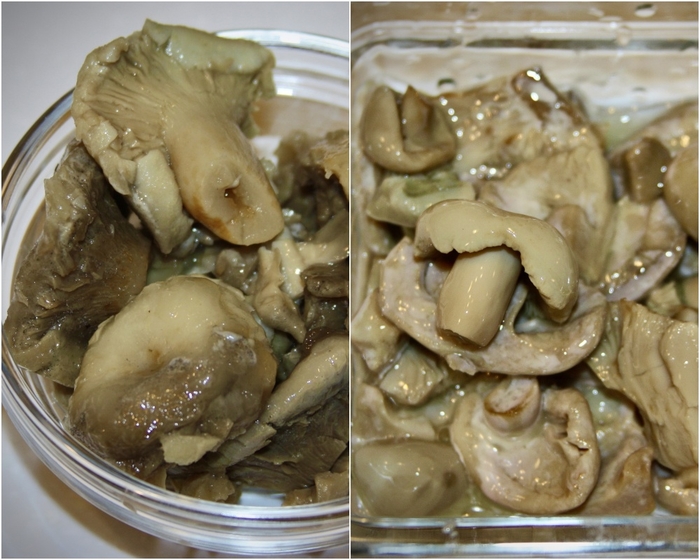 Грибы. Идеально бы, конечно, микс из соленых боровичков и груздочков бы взять. Но! Где ж их взять то?