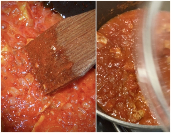 На правой картинке – она готовая. Видите – все совместилось. Ничего не пережарилось. Пропиталось соками. А цвет? Ну так помидоры же. Как ни крути, а доминировали именно они.