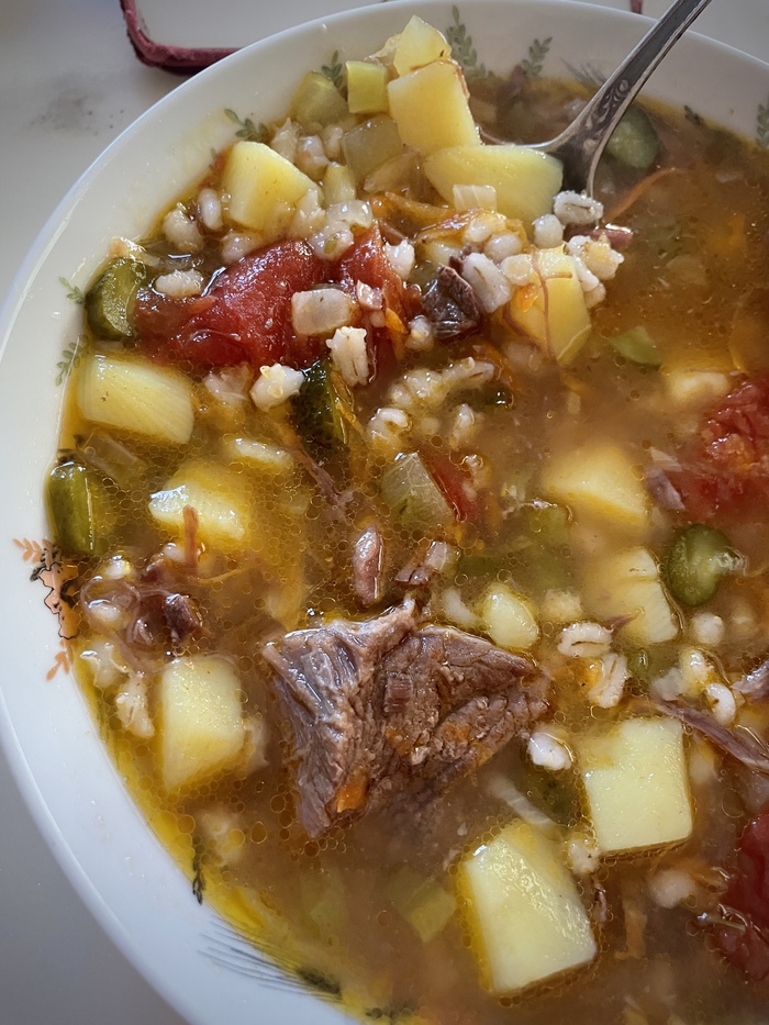 И выложил в бульон заготовленную для «просто супа» картошку. Для солянки она вовсе ни к чему, но не пропадать же продукту. И всякое семужье, которое с костей хребтовых, охвостья, головы из супового набора обобрал.