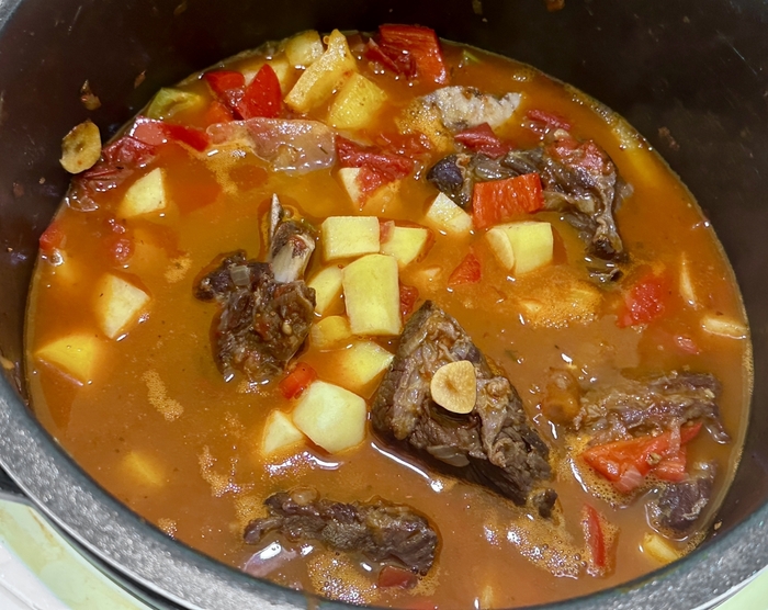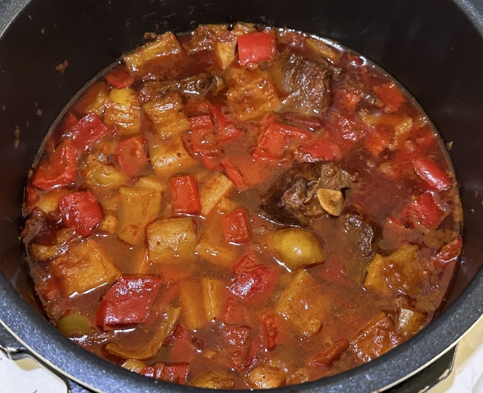 И вот это все надо потушить. Повторюсь – нагрев сильно «ниже среднего». Если сделать нагрев выше – получится банальная зажарка. Не нужно это. Берегите здоровье и наслаждайтесь вкусами не жареного, а …. В общем, не жарьте, не надо.