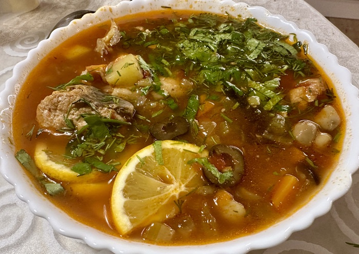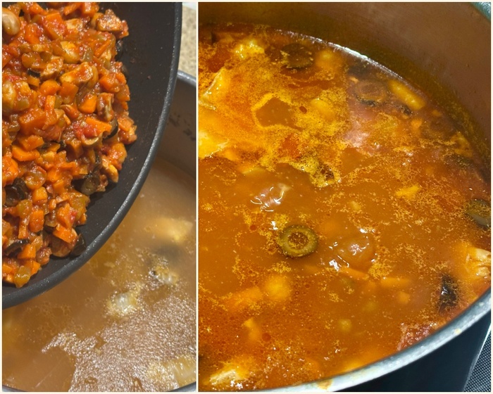 И опять же: да, морковку в солянку класть совершенно незачем. Но, во-первых, она была приготовлена для «просто супа», а во-вторых, ничего и не испортила.