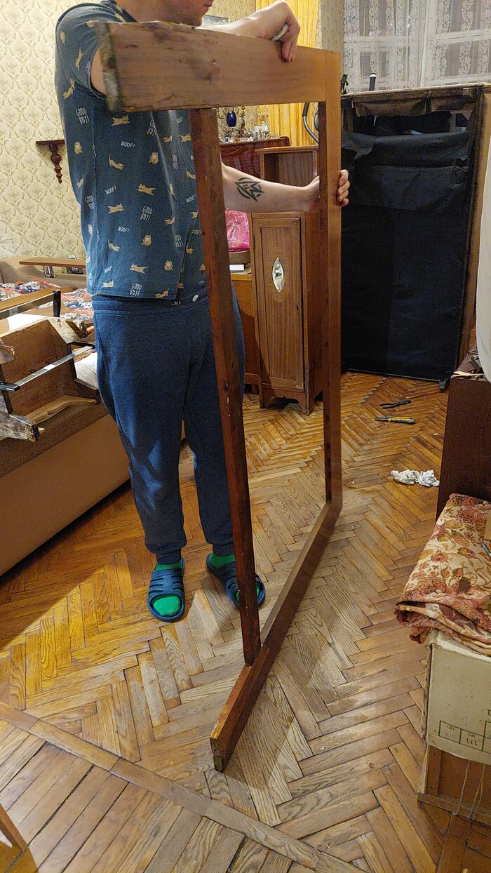 Столик впечатления не произвёл. Захожу в соседний зал, а том он. Нет, ОН! Мечта всей моей жизни- кабинетный диван начала 20 века. Мечта всегда была несбыточной- за них хотят неприлично большие деньги, даже в с состоянии "дрова". Робко спрашиваю цену и оказывается, что цена совсем не заоблачная и ещё даже можно поторговаться. Как потом муж сказал, что диван ему тоже очень понравился и он сразу понял, что без него мы не уйдем. Искра, буря! Смотрю на мужа глазами кота из Шрека. Муж говорит:"Берём! Тем более, я тебе на НГ и на ДР и на 8 марта ничего не дарил. Ты ж такой хотела, Мечта твоя." Счастливее меня человека тогда не было! Оставили залог, а через 2 дня диван оказался у нас дома.