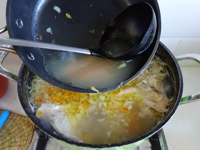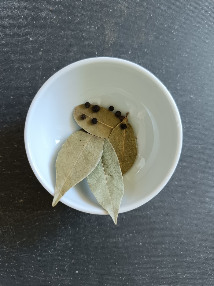 Кстати, вот тут был первый нюанс - лаврушка и перец закидываются сразу на этапе бульона, чтобы вкусы из них успели раскрыться. Если забрасывать в конце варки, как обычно советуют - может не прокатить (зависит от пересушенности, я считаю), во всяком случае я стал кидать в бульон именно потому, что не чувствовал в итоговом вкусе ни перца ни лаврушки, когда раньше кидал в конце варки.