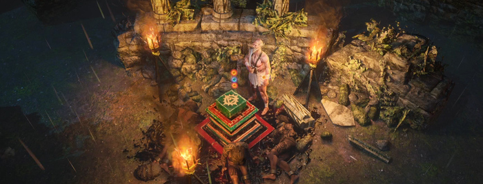 Тут нам попадается умирающий изгнанник который говорит, что невдалеке виднеется поднимающийся дымок и нужно посмотреть что там находится.