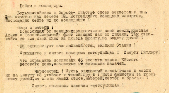 «Разобьём эту сволочь - увидимся, а если не придётся, так знай, что твоя дочь трусихой не была и честно отдала жизнь за Родину»