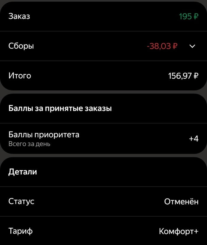 В среднем было от 350 до 580 за поездку, чего бы не поработать, — сообщил Владимир. — Ночью за 9 минут получил 990 рублей, последняя поездка была 960 рублей. В итоге 11 тысяч за 31-е и 4,5 тысяч за ночь первого числа.