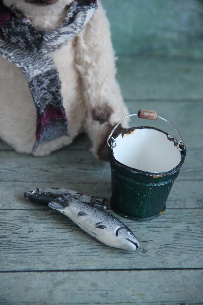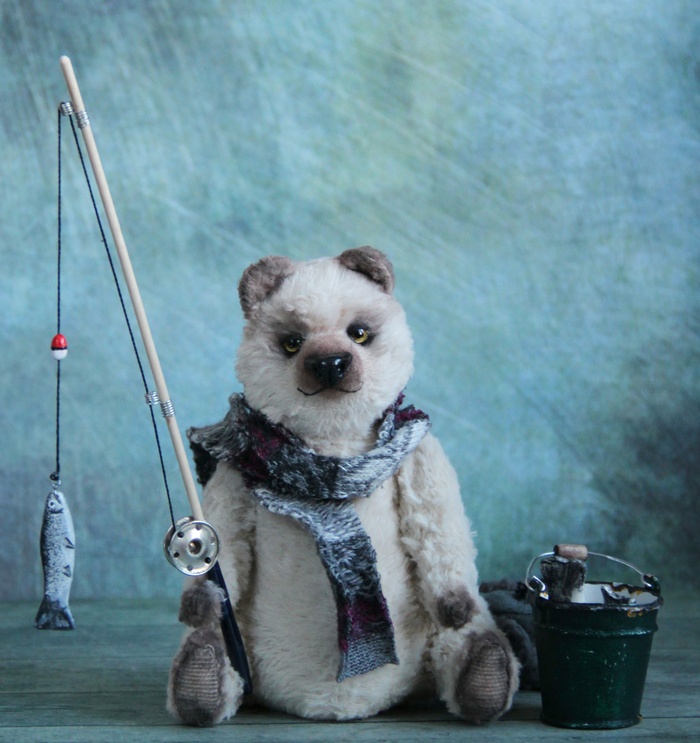 Ушанка и шарф снимаются, можно крутить-надевать как фантазия подскажет. Удочка тоже достается и ее "позу" можно менять в определенных пределах.