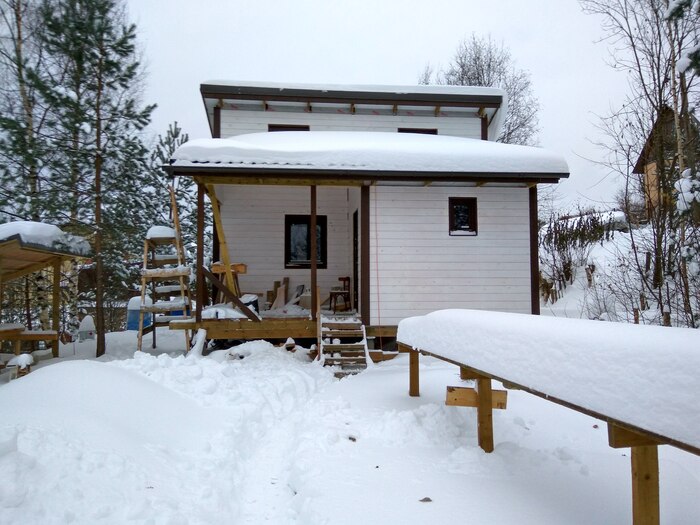 Ну и что я могу вам сказать напоследок? Решили строиться своими силами - не бойтесь. Дорогу осилит идущий. Можно долго изучать технологии, подготавливаться теоретически, продумывать, придумывать... А можно брать и делать. Лучше конечно иметь план действий(не поскупиться на проект, даже если собираетесь всё делать своими силами) , или хотя потренироваться "на кошках" типа сарайки. Всё получится. Пускай не так, как оно представляется во влажных мечтах, но получится. Этот дом был построен, откровенно говоря, "через жопу". И я был уверен, что следующая моя стройка будет "по уму". В целом, если бы я не психанул, и не решил однажды летом, что надо сделать "здесь и сейчас", может быть так бы оно и было. Но не было времени размышлять, и я снова ввязался в стройку в основном на энтузиазме. Про это я пишу в другой серии постов. Там, хоть и был проект, но он был сырой и доделывался прямо на ходу, но результат на сей раз радует меня куда больше.