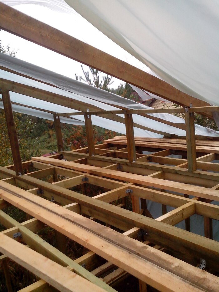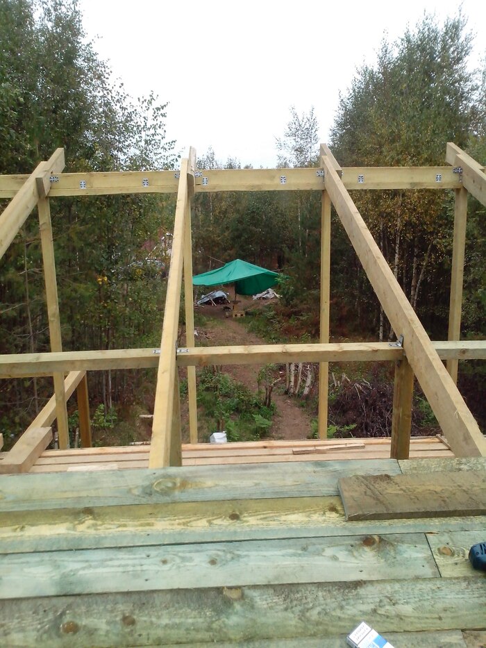 С крышей решили, что сделаем обрешетку из доски 50на100. Это было единственным сравнительно простым вариантом "спасти" ситуацию.