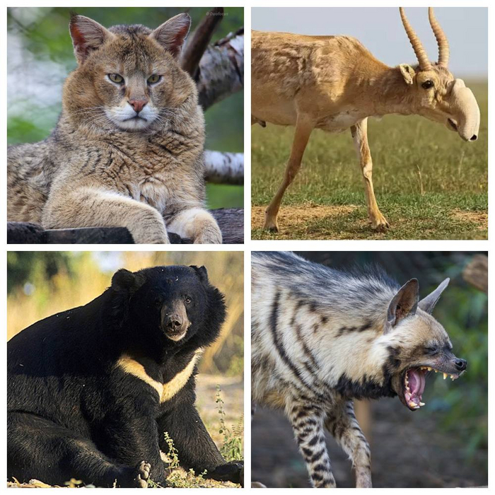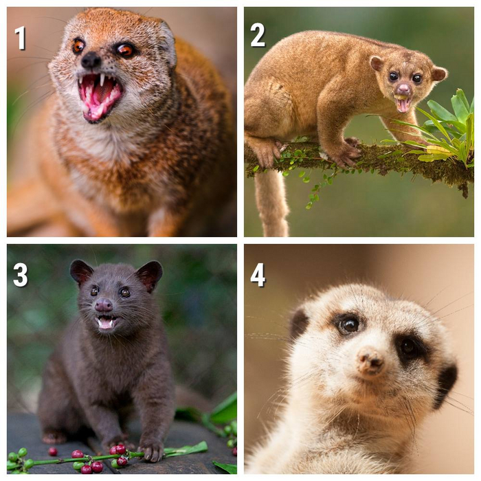 1. Китам. 2. Носорогам. 3. Ленивцам. 4. Слонам.