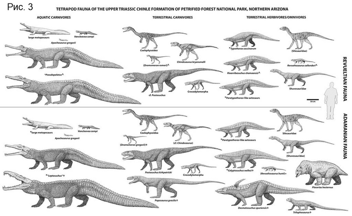 Доминирующая фауна триаса представлена в основном зухиями, которых в юре сменят динозавры