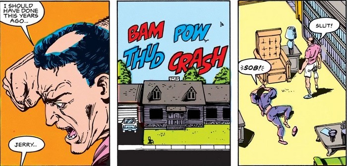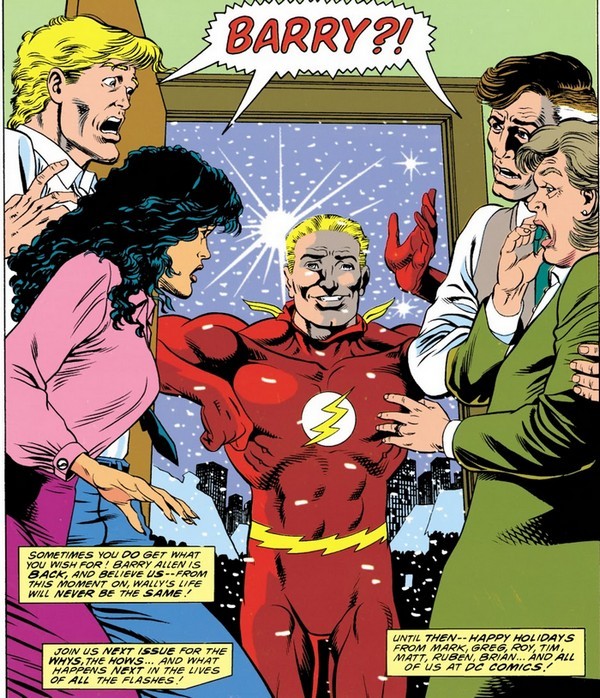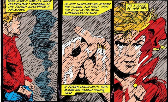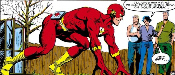 На очереди немного менее эпичные приключения в комиксе The Flash #5. Дела любовные – Тина Макги влюбилась в Уолли Уэста. Совершенно взаимно, между прочим. У них любовь…и эту любовь почему-то не одобряет Джерри, муж Тины. И ему не сильно нравятся новости о том, что Тина решила, что он ей больше не муж и Уолли Уэст ей всё-таки милее. Прописав жене сеанс ББПЕ (и обозвав шлюхой, и это слово не зацензурили), Джерри в ярости сваливает в свою лабораторию (он ведь тоже учёный), обдалбывается наркотиком, который недавно разработал – и получает суперскорость.
