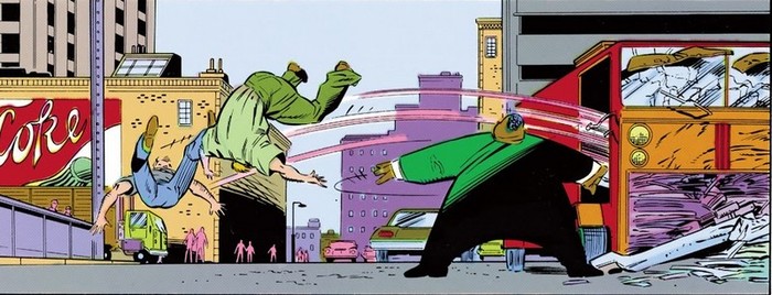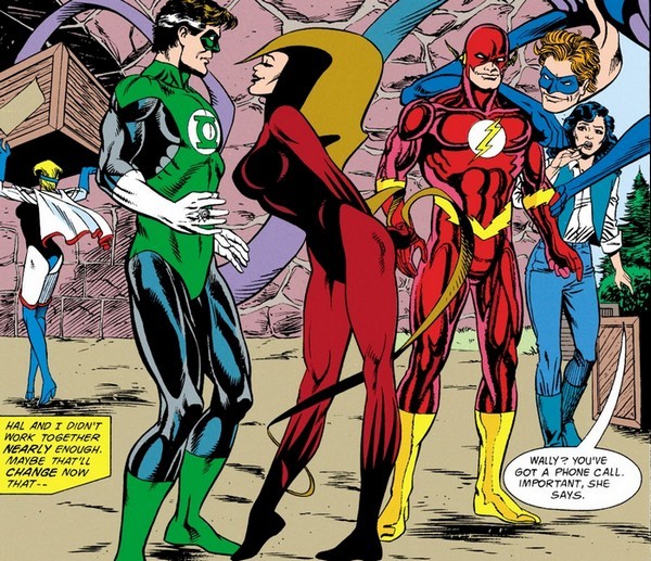 И назревает он в комиксе The Flash #8. Начинается махач между решившими свалить в США скороходами в компании Флэша и прибывшими их остановить скороходами из Синей Тройки. Как и ожидается, махач длится недолго – скороходы же. Побеждает Красная Тройка, синие сдаются. Питор Орлофф отправляется лечить Джерри МакГи, а Уолли Уэст теряет сознание – и приходит в себя в Цитадели Зелёных Фонарей (в Лос Анджелесе, ибо к этому моменту космический Корпус по большей части распался, и несколько Фонарей живут на Земле). И он в Цитадели не один – там же находится Лига Справедливости (уж какая есть на тот момент) в полном составе и команда Аутсайдеров.