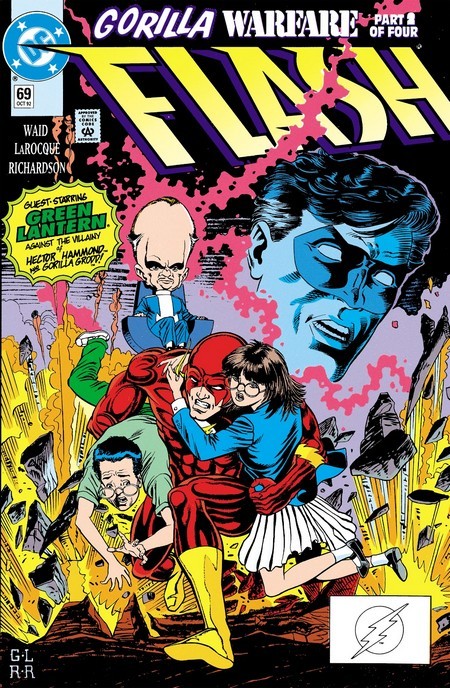 Сегодняшний Алый Забег начнётся с комикса The Flash vol.2 #4 (в дальнейшем номер тома буду опускать) за сентябрь 1987 года, с историей от Майка Бейрона и рисунком от Джексона Гайса. Напомню, прошлый выпуск закончился тем, что на Землю прибыл злой искусственный интеллект Килг%р. Так что сейчас Флэш (Уолли Уэст) и учёная Тина МакГи отправляются в Солт Лейк Сити, чтобы обсудить, как же с этой напастью бороться. Впрочем, на собрании Килг%р нападает на солдат, создав из ближайшей электроники буйного робота…но робота удаётся утихомирить, отключив некоторые очень важные провода. Но Килг%ра так просто не ушатать…поскольку в Солт Лейк Сити у местных нет идей, Уолли отправляется в Нью-Йорк, чтобы испросить совета у своего старого друга и бывшего соратника по команде Титанов, Виктора Стоуна/Киборга.