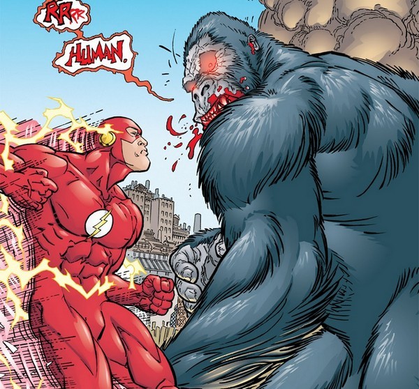 Сначала в Метрополис – там он забирает буквально из-под носа у застывшего Супермэна первую микроволновую бомбу, прячет её в глубокой шахте, заброшенной ещё с 1940-х. Затем – в замерший Готэм. Застывший в воздухе Тёмный Рыцарь, наверное, думает, что вот-вот поймает Пугало – но это не Пугало, а обманка с бомбой. Бэтмэн ничего не заметит –з подумает, что Пугало просто исчез. Возможно, подумает, что и не было никакого Пугала, что он газу нюхнул галлюциногенного. Эту бомбу Флэш прячет глубоко под обломками, оставшимися после землетрясения. Третья бомба – в Нью-Йорке, замаскирована под батарею Зелёного Фонаря, в то время как настоящая батарея вибрирует с такой частотой, что видит её только Флэш. Схватив поддельную батарею, Алый Скороход взбегает на вершину горы, и, набрав достаточно инерции, выбрасывает бомбу в стратосферу – если повезёт, она выйдет в космос. Последняя бомба – в ракете, которая неподвижно мчится к Атлантиде, и наперерез которой также неподвижно спешит Аквамэн. Ракету не ухватишь – так что Флэш на суперскорости обезвреживает её. Осталась мелочь – по следу ракеты вычислить, откуда она была запущена. Так Флэш находит логово Черепахи, своего давнего врага. Черепаха рассчитывал, что Уолли придёт за ним на суперскорости – ведь он соорудил машину времени, работающую по принципу Космической Беговой Дорожки, планируя переместиться в 19 век, более медленную эпоху без всех этих слишком быстрых новшеств типа мобилок, компьютеров и интернета. Что ж – будет тебе прошлое. Вместо того, чтобы замедлиться, Флэш ускоряется – и машина переносит Черепаху в далёкое прошлое, в каменный век. Ибо нефиг.
