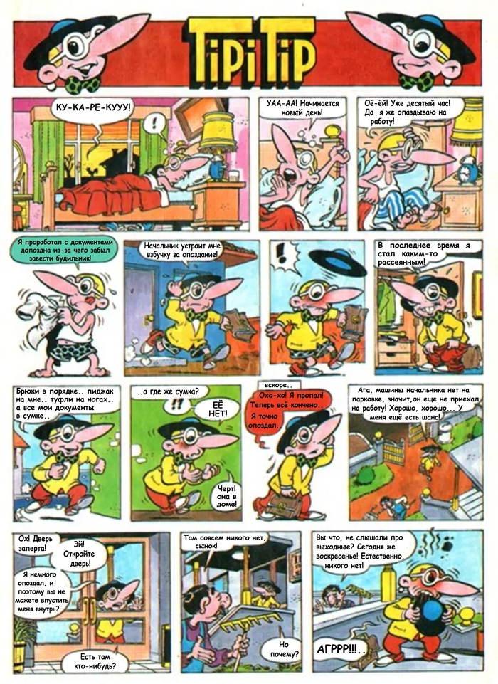 Ещё один рекламный комикс про Тиритипа на всю страницу. Такие истории печатали в конце 80-х - начале 90 в турецких молодёжных журналах. Чрезвычайно редкие экземпляры, в отличие от вкладышей. Удалось разыскать порядка 10 штук, в хорошем качестве - единицы. Если у кого есть сканы других выпусков или знаете, где выложены, скиньте в комменты, пожалуйста.