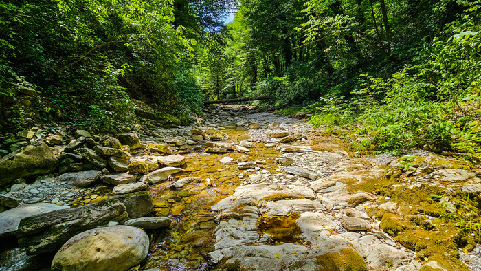 Ручей каскадом спускается по естественным ступеням, как раз он нас и приведет к пещере.