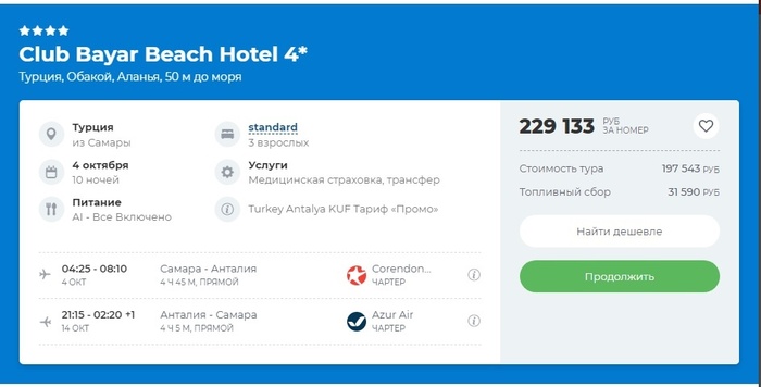 Встречаем Club Bayar Beach Hotel 4* в 3 км от центра Алании, в районе Оба с собственным песчаным пляжем. В отличие от Египта, Турция нам сразу выдаёт 4* и цену на 15% дешевле, всего то 229 133 рубля.
