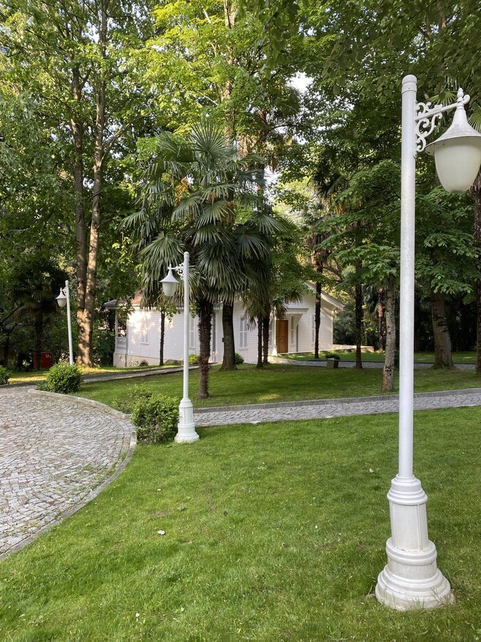 Очень живописная и огромная территория. Все виллы типовые, одинаковые, в одной из таких и жили