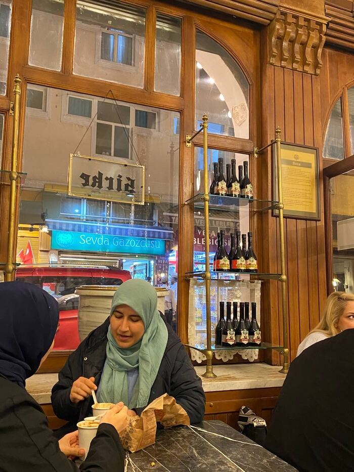 Считаю, для первой поездки не то место, куда стоит бежать сразу, тем более если время ограничено. Но когда уже кажется, что всё видел в Стамбуле и хочется удивиться, поискать артефакты — почему бы не попробовать. Тем более бар любопытно выглядит — всё-таки кафе 1876 года. Напротив парк с мечетью — можно ехать не чисто ради бозы, а ещё и прогуляться.
