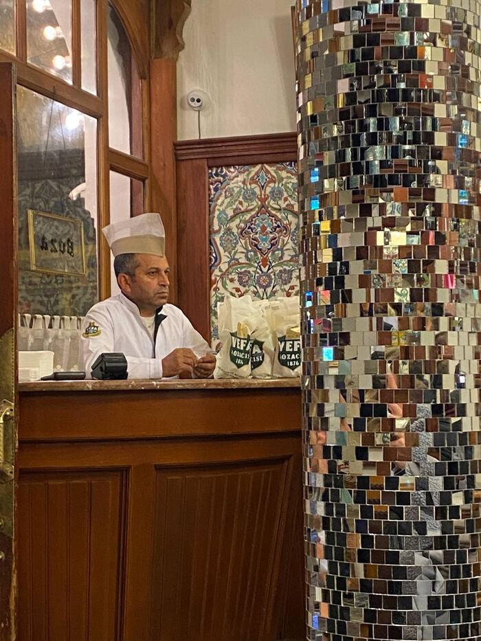 А место, про которое вам рассказываю — оно славится бозой, в баре больше ничего не продают. Там когда-то пил бозу Ататюрк, первый президент Турции.