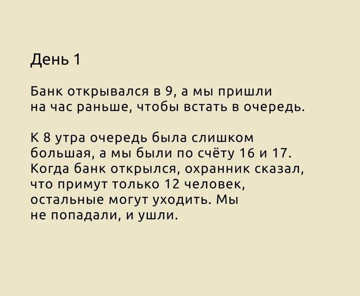 Причём нашему другу бесплатно открыли счёт в одном из банков, а когда на следующий день мы пришли туда же — на честном глазу сотрудники говорили, а мы и никогда не открывали бесплатно и без внж.