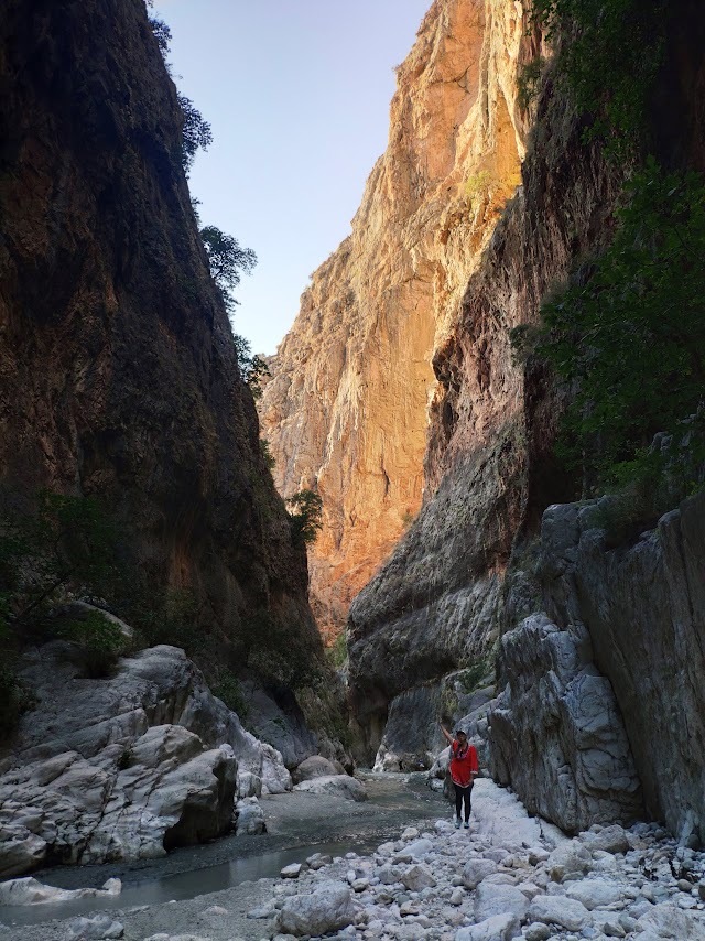 7. Саклыке́нт - глубокий, узкий, протяженный каньон со входом здесь: 36.473495, 29.404077 и ценой всего 13TL, то есть менее 1€, так что проще взять билет. Первые 200 метров оборудован мост вдоль реки. Далее нужно преодолеть брод (высота воды от колена до груди в зависимости от сезона и роста) по натянутой веревке, после чего ещё 600-700 метров по щиколотку в воде до начала серьёзных препятствий. Особо подкованные могут не жалеть себя ещё с десяток км - каньон очень длинный.