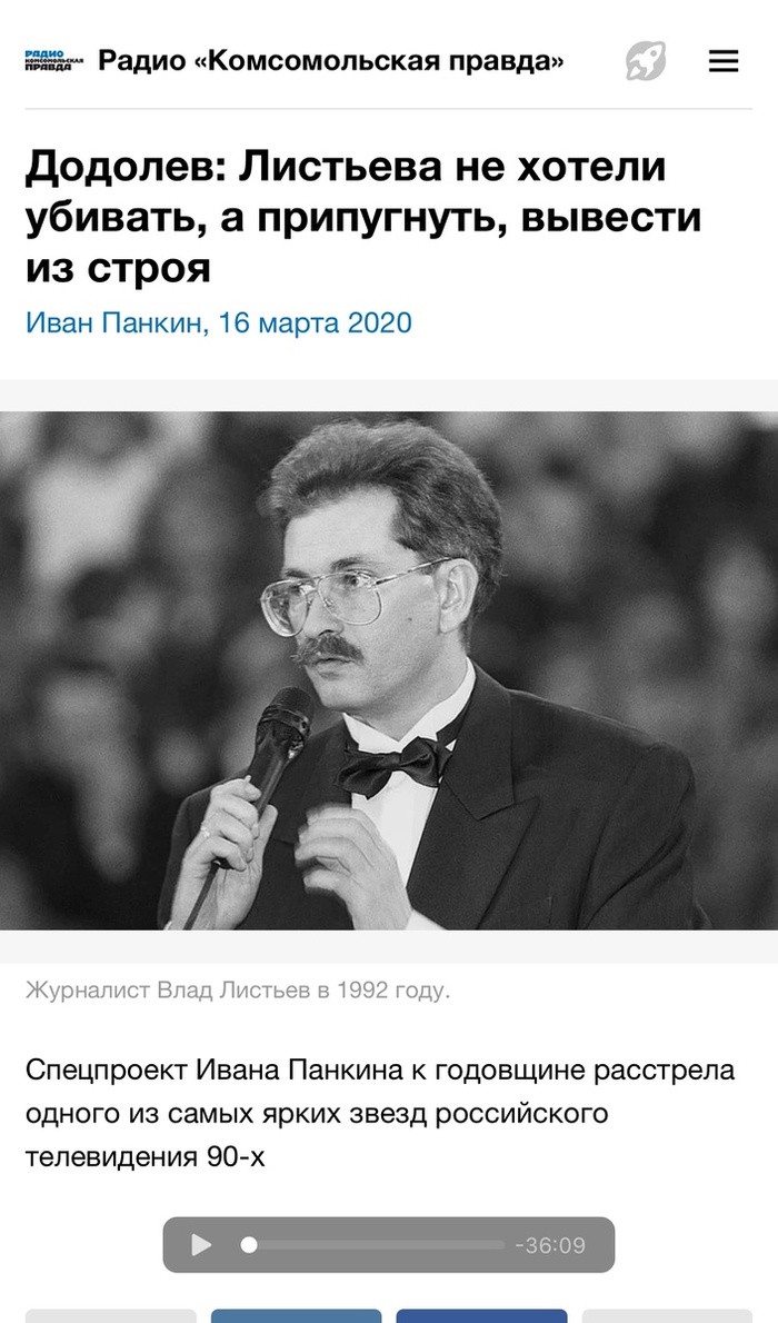 30 лет назад застрелили Владислава Листьева, экс-ведущего программы «Взгляд», которого за десять недель до убийства назначили главой Первого канала (тогда ОРТ).