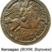 В свое время член Воронежской ученой архивной комиссии С.Е. Зверев по поводу выставки к XII археологическому съезду писал: "В отделе древностей исторических, представленных на съезд Воронежским губернским музеем, обратил на себя внимание медный медальон с изображением Китовраса. Им заинтересовался член американского музея естественных наук в Нью-Йорке В. Иохельсон. Совершенно такие же изделия собраны им у тунгусов Гижигинского округа Приморской области и у юкагиров Калымской тундры (за Полярным кругом) Якутской области. У обоих племен эти кружки служили грудным украшением (привешиваются к переднику на груди женщин) и называются "грудным солнцем". Украшения эти как семейные драгоценности переходят по наследству. С другой стороны якуты говорили Иохельсону, что такие же бляхи находились среди металлических подвесок старинных шаманских костюмов".