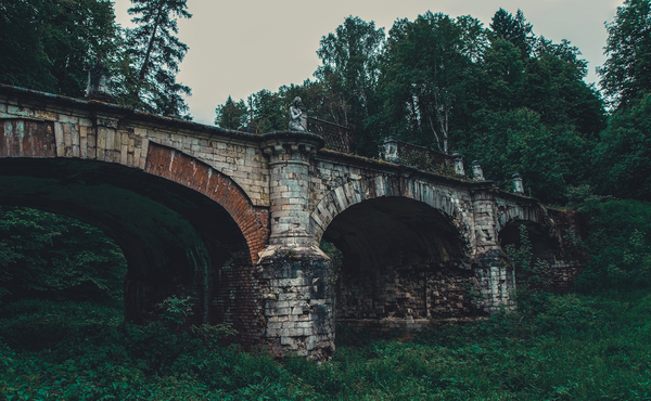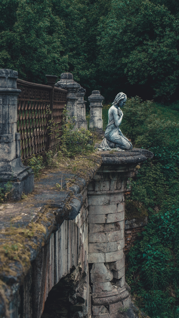 Вторая часть нашего фотосета со статуей прошла в глубине территории усадьбы Середниково, где мы нашли потрясающе красивый старый мост.