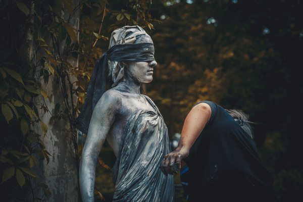 Меня перекрасили в более холодные оттенки, сняли повязку и убрали атрибуты Фемиды - и на этот раз прохожие действительно пугались, когда я внезапно поворачивалась и открывала глаза))