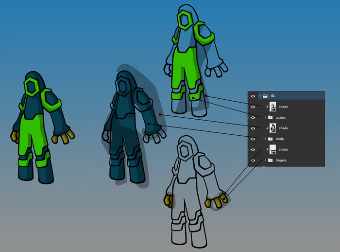Копии персонажа при этом рисовать уже не нужно