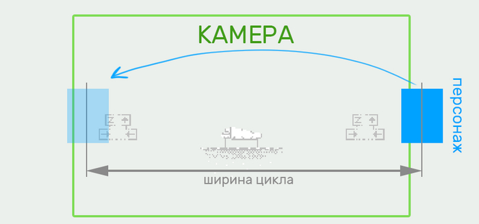 Синее - зоны, которые будет видеть камера на границах цикла. Туда нужно скопировать контент с противоположной границы.