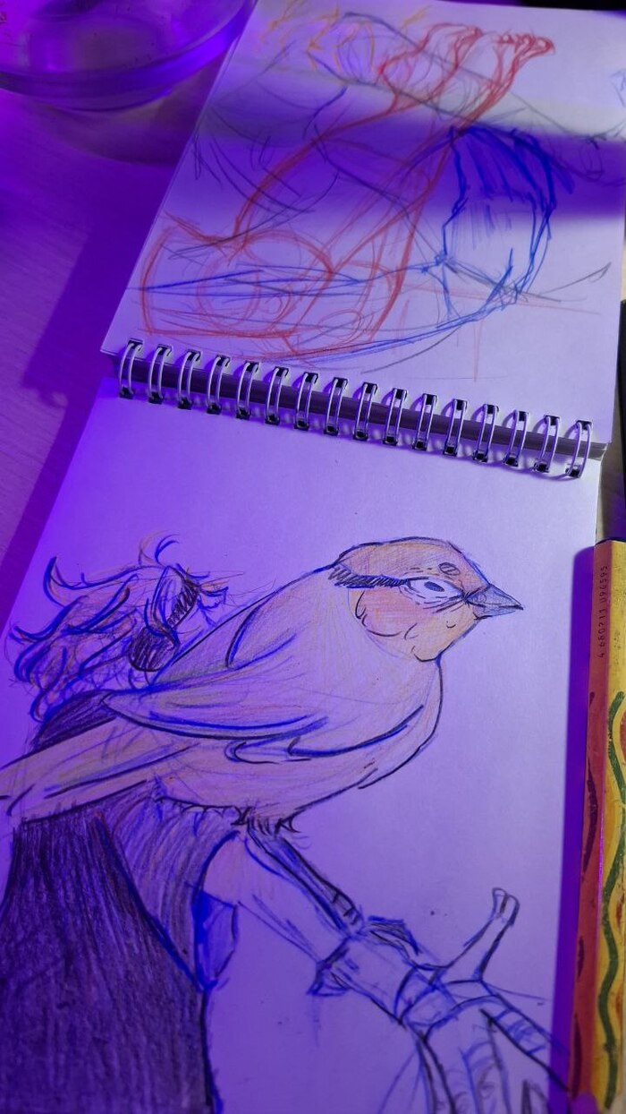 Сначала рисуешь простыми карандашами, чтобы все было правильно, "не переводишь" материалы, а потом посылаешь все к черту, рисуешь цветными карандашами ни разу не используя ластик а живу ли я в своем безумстве или все же хочу чтобы оно кому-то нравилось хмХМхм