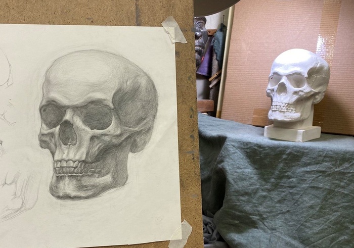 7 DELETED Лига Художников Серия Учебные длительные рисунки Профиль черепа + этапы 1 год назад Длительный рисунок в студии с натуры (февраль 24 года). Сама люблю эту работу, мне кажется неплохо вышло. Показать полностью 2 [моё] Начинающий художник Рисунок карандашом Череп Академический рисунок Рисование Длиннопост Ещё 0
