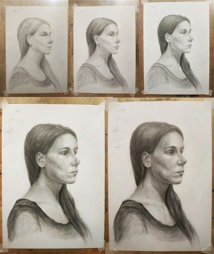 21 DELETED Лига Художников Серия Учебные длительные рисунки Второй длительный портрет с натуры 1 год назад Делала этот рисунок с натуры сразу после копии портрета по этапам с книги Могилевцева. Это дало буст(март 24 года). Сейчас уже конечно вижу много недостатков, ну да ладно)) Все на пользу, все это путь Этапы, кажется 5 занятий в студии Показать полностью 3 [моё] Рисунок карандашом Начинающий художник Портрет Мужчины Длиннопост Ещё 0