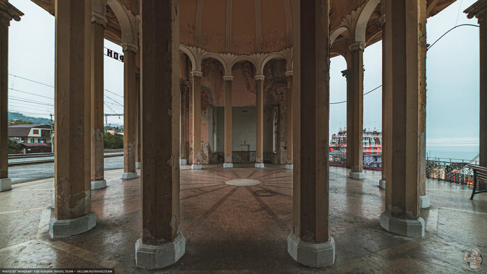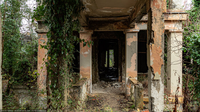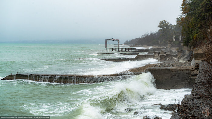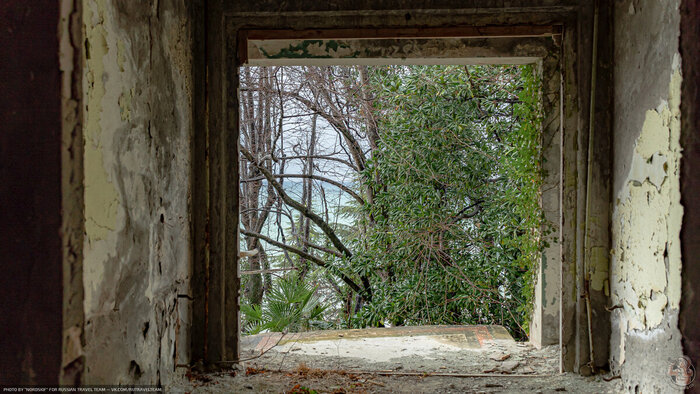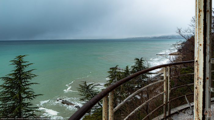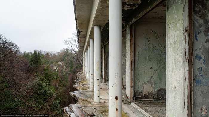 Очередная огромная база отдыха на шикарном черноморском берегу стоит заброшенной и медленно, но очень, верно, превращается в руины. А ведь, раньше, здесь был пансионат Министерства Путей и Сообщения — одного из самых влиятельных департаментов в СССР.