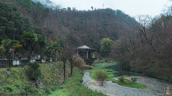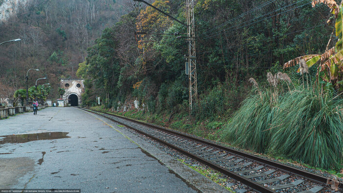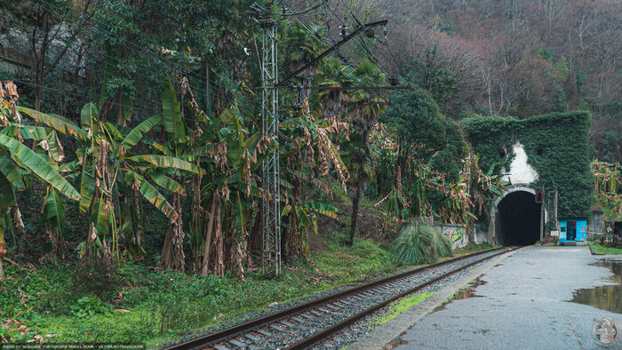 Наше новое путешествие по руинам Советского Наследия пройдёт при необычной для субтропического климата погоде. На улице всего лишь +3 градуса тепло и буйную южную растительность припорошило снегом.