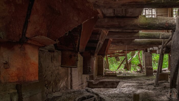 Лучше всего сохранился — третий этаж. В целом, основные балки-перекрытия выглядят надёжно и если заняться крышей и вставить окна-двери, то мельница простоит ещё не один десяток лет. За которые, может быть, найдётся меценат-инвестор, что превратит заброшку в привлекательную достопримечательность.