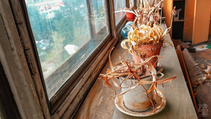Состояние у здания аварийного, перекрытия сохранились лишь частично, да и те, что уцелели, опасно прогибаются под ногами. Любопытно, что хотя окон почти не осталось, внутри всё ещё слегка пахнет мукой...