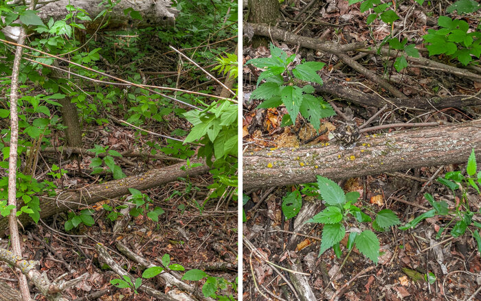 Ничего подобного замечено не было, зато мы повстречали вот такую птичку, умело маскирующуюся под лесную подстилку.