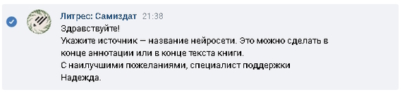 В итоге я написал в Вконтакте в их группу и получил вот такой ответ, который и реализовал в конце книги написав источник.