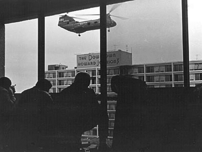 Еще одно фото вертолета на фоне отеля «The DownTown Howard Johnson's»