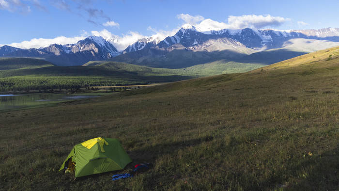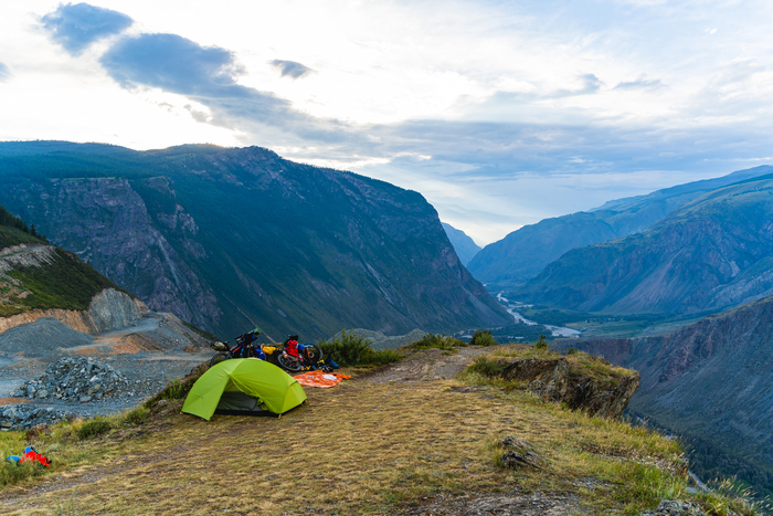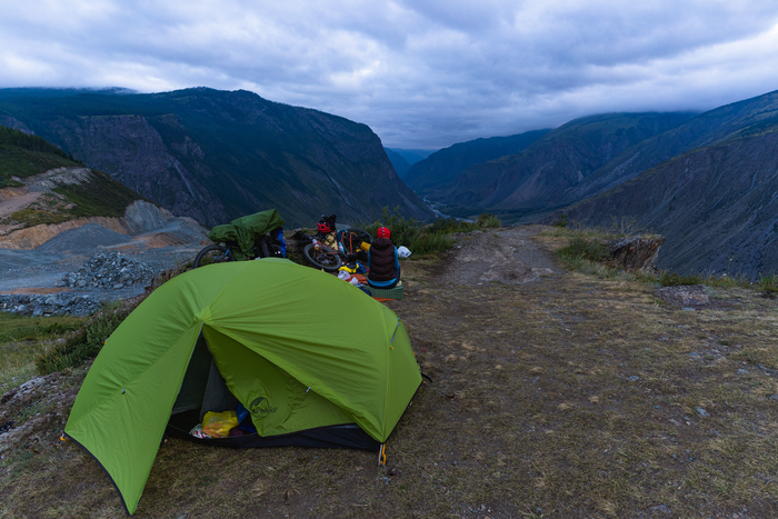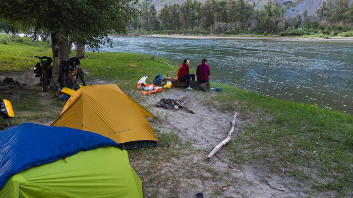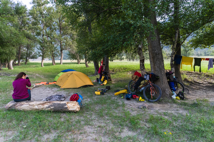 Доехали до Акташской ГЭС, обнаружили там полчища комаров, поэтому встали подальше у реки. Но и там они нас донимали. К слову, в 2022 комаров мы встретили штуки три за три недели.