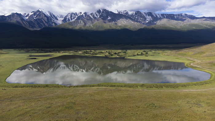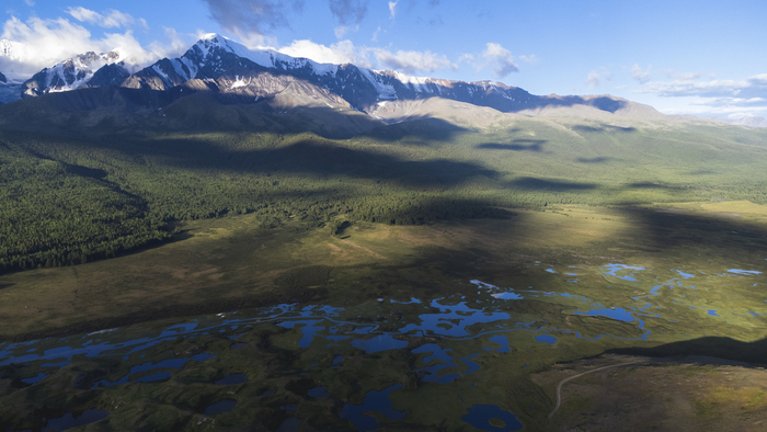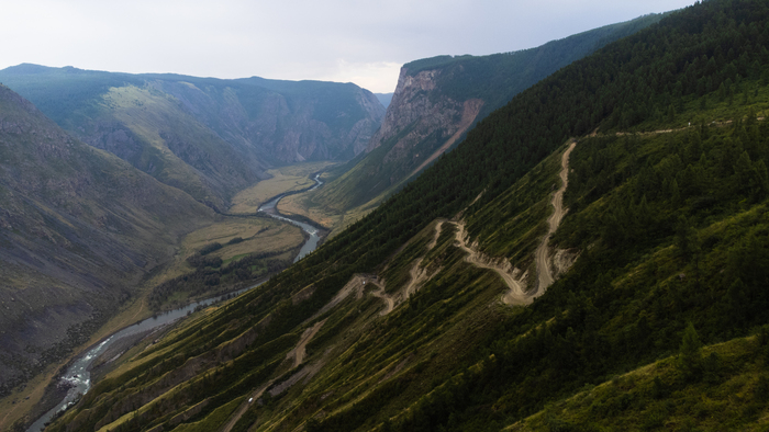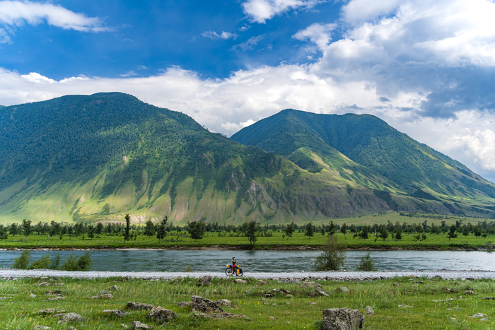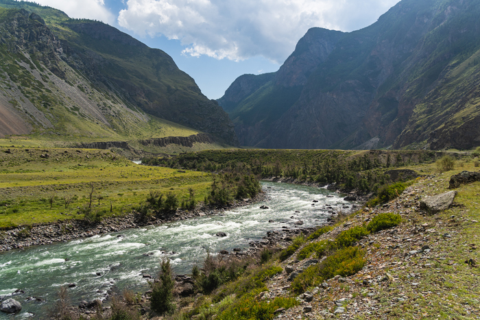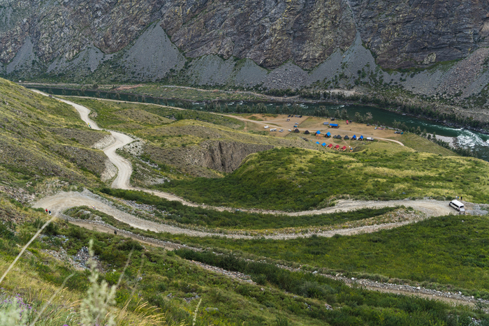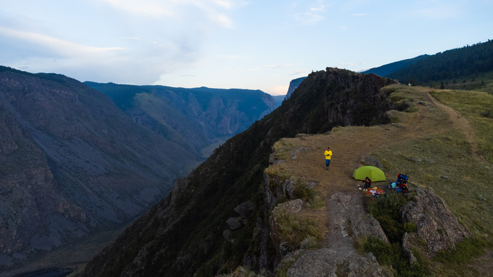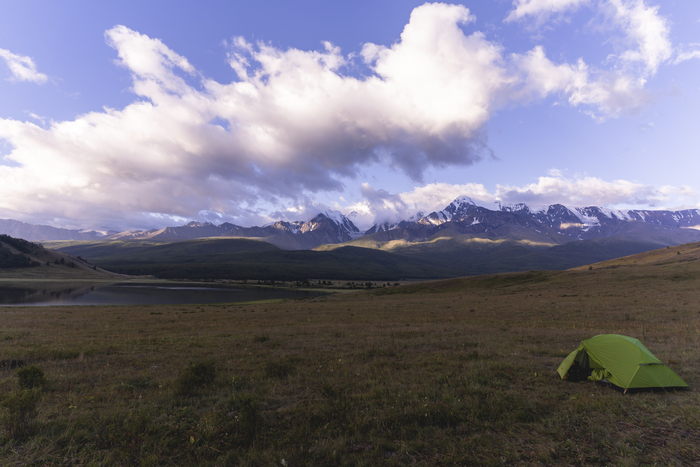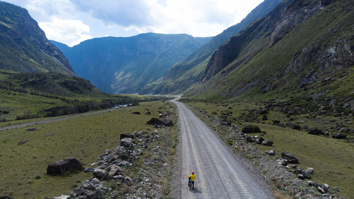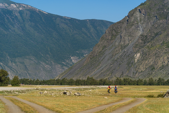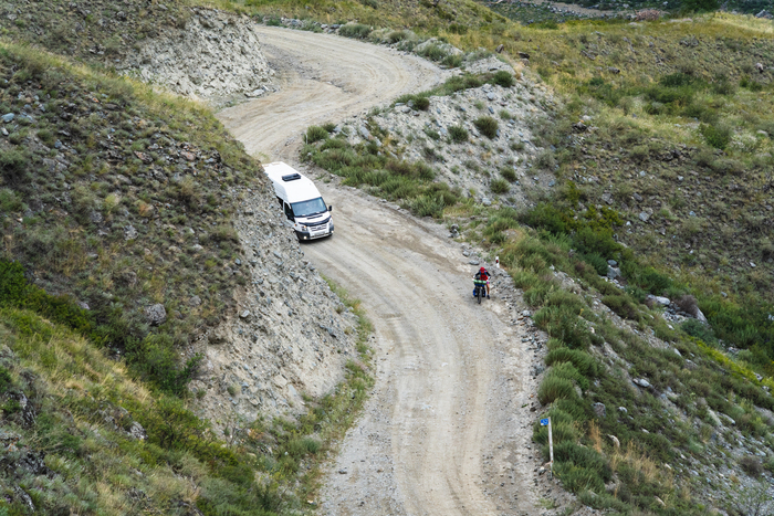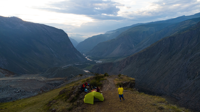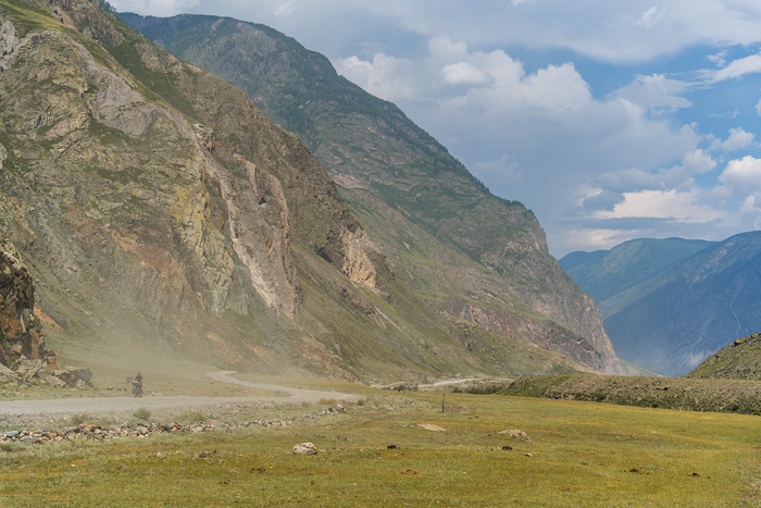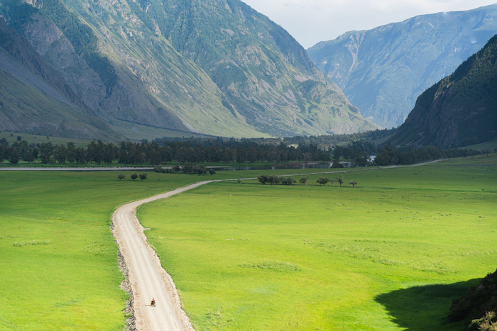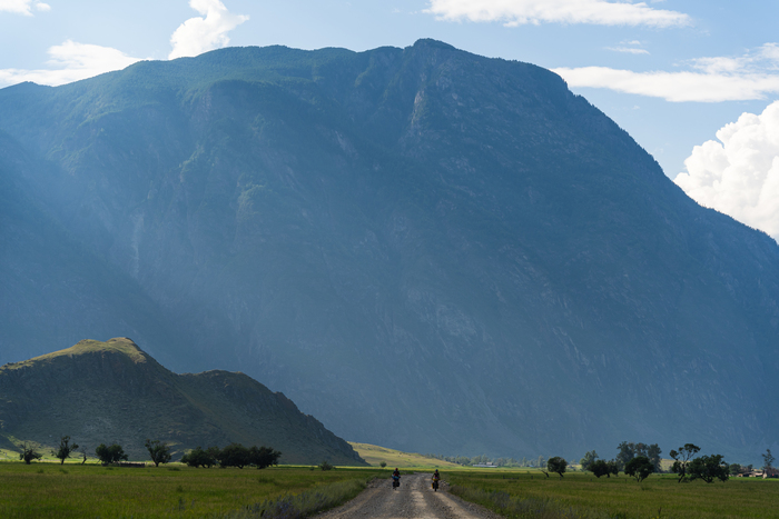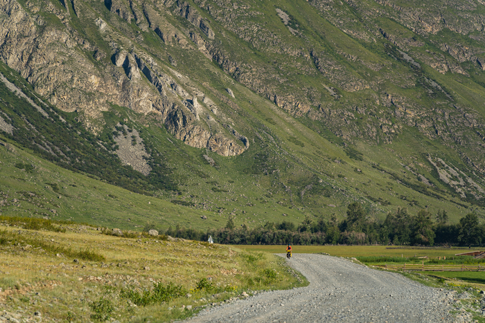 Я очень хотел сегодня доехать до Кош-Агача. При планировке маршрута учёл «женский темп» передвижения, но всё равно ошибся. Ехали мы значительно медленнее чем я планировал. А с другой стороны такой темп давал возможность много снимать, и на камеру и на дрон. Что я и делал. В Курае нашли обалденную кафешку на краю села. Пообедали и поехали дальше. Асфальт, Северо-Чуйский хребет, в целом очень интересные пейзажи сопровождали нас до Чаган-Узуна. Именно там и заночевали, в километре южнее от села.