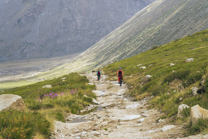 Казалось, что спуск начинается сразу с перевала, но нас ждали еще пара подъемов. Это сильно расстроило девочек, ведь я им обещал крутой спуск. Потерпите, скоро будет, но сначала Михалыч.